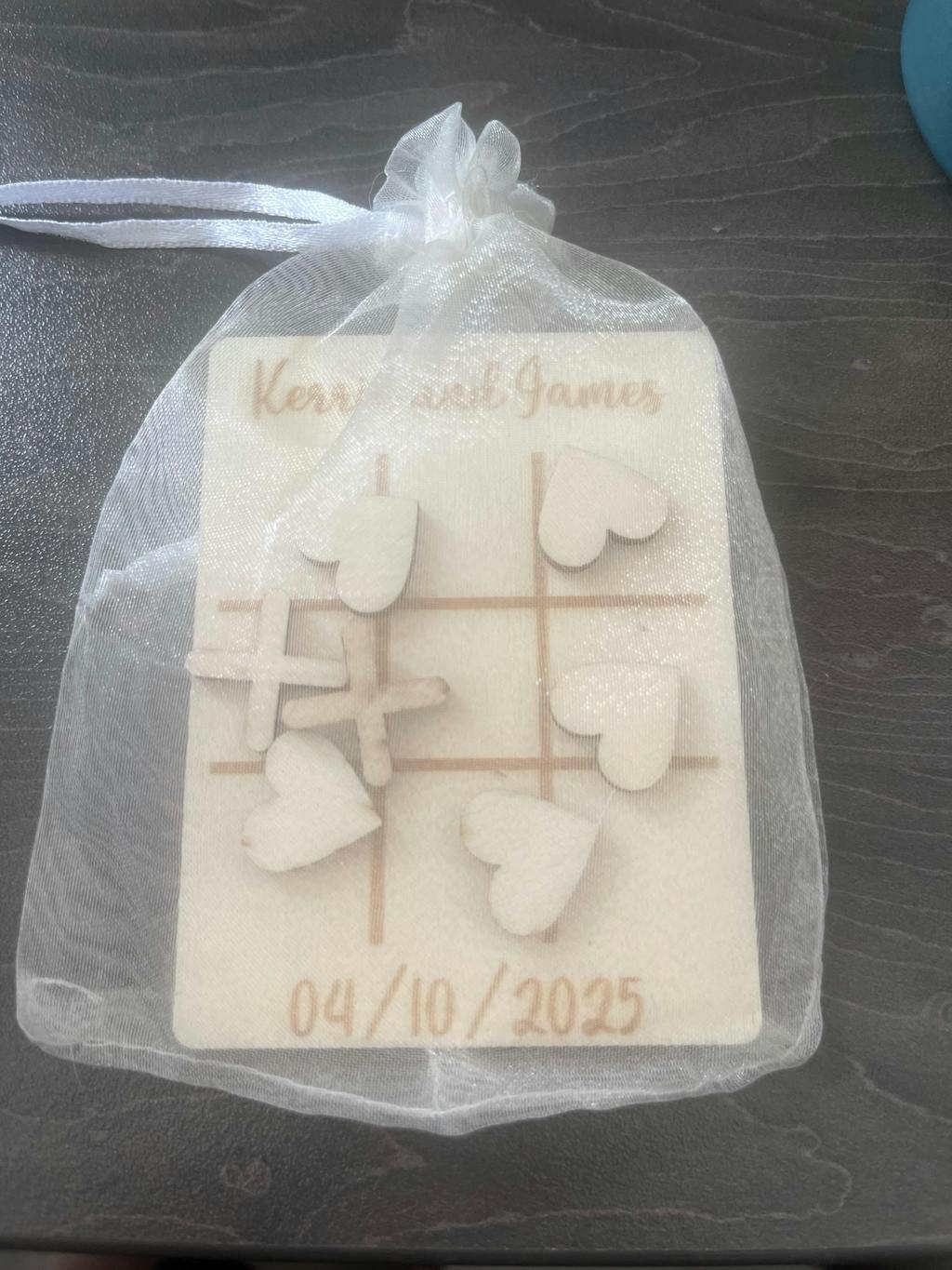 Personalised with your names and wedding date, it also makes a memorable wedding favour your guests will treasure. Delivered in a cute white organza bag, it’s a sweet and stylish addition to your tables, blending entertainment and keepsake-worthy charm for your big day.